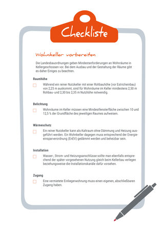 Wie sollen die Kellerräume genutzt werden? Darüber sollte man sich möglichst schon bei der Planung eines Hauses Gedanken machen und gleich die nötigen Voraussetzungen (Raumhöhe, Licht, Heizung) schaffen. Dies gilt insbesondere, wenn diese als zusätzlicher Wohnraum oder Einliegerwohnung dienen.